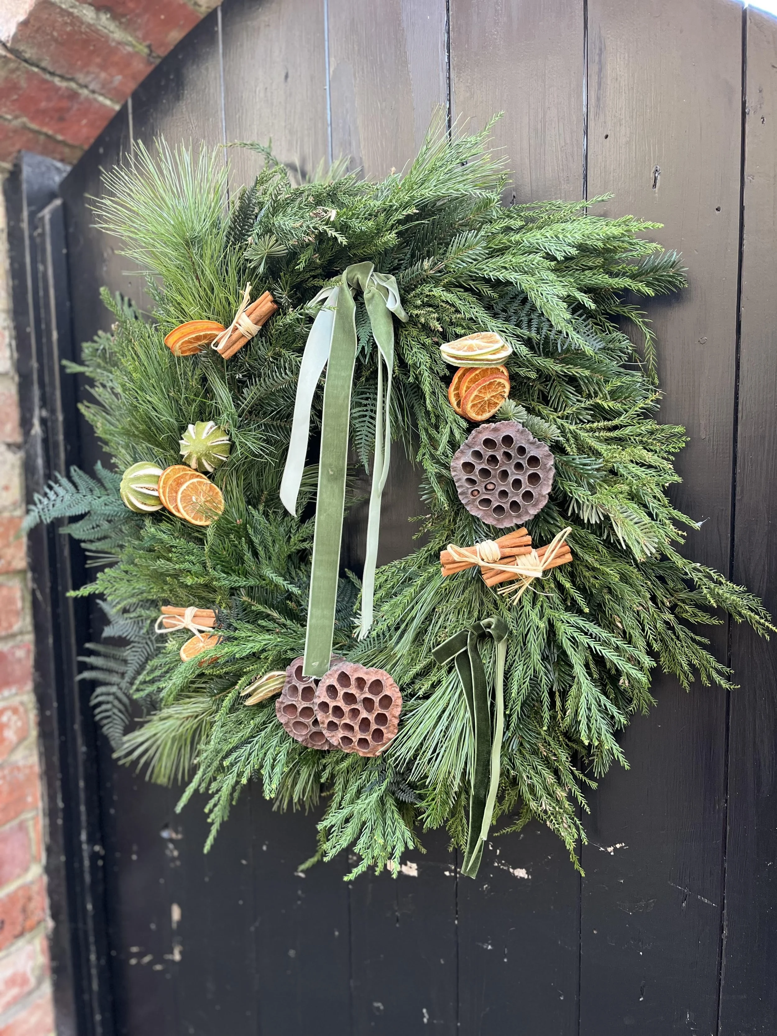 With lots of festive foliage, dried fruit, cones and cinnamon, our candle arrangements will look super cute on your table.
